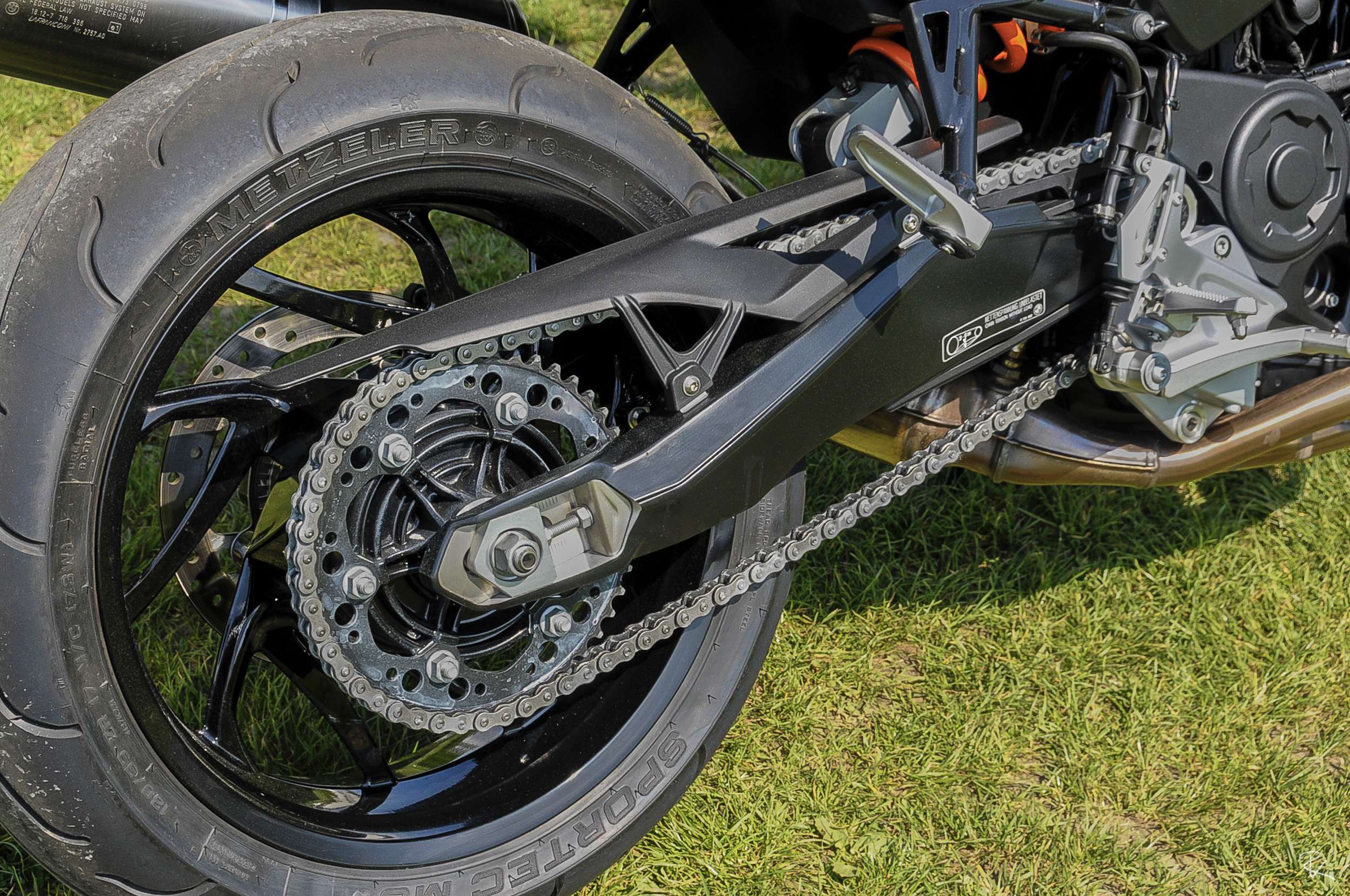 Im Vergleich zur F 800 S/ST fällt ein geänderter Sekundärantrieb auf. Statt mit Zahnriemen wird die Kraft mittels O-Ring-Kette zum Hinterrad übertragen. Die geänderte Schwinge brachte 2 kg Gewichtsersparnis. Ich persönlich finde das schade, da ich gerade den Zahnriemenantrieb an den S/ST-Modellen sehr schätzte. Nun muss man sich wieder um eine Kette kümmern. Ist auch kein großer Aufwand, doch aufwändiger als der Zahnriemen. Aber daran soll die Freundschaft mit der F 800 R nicht scheitern. Schließlich wartet sie mit genügend spaß- und genussbringenden Details und Vorteilen auf. Dazu aber später.