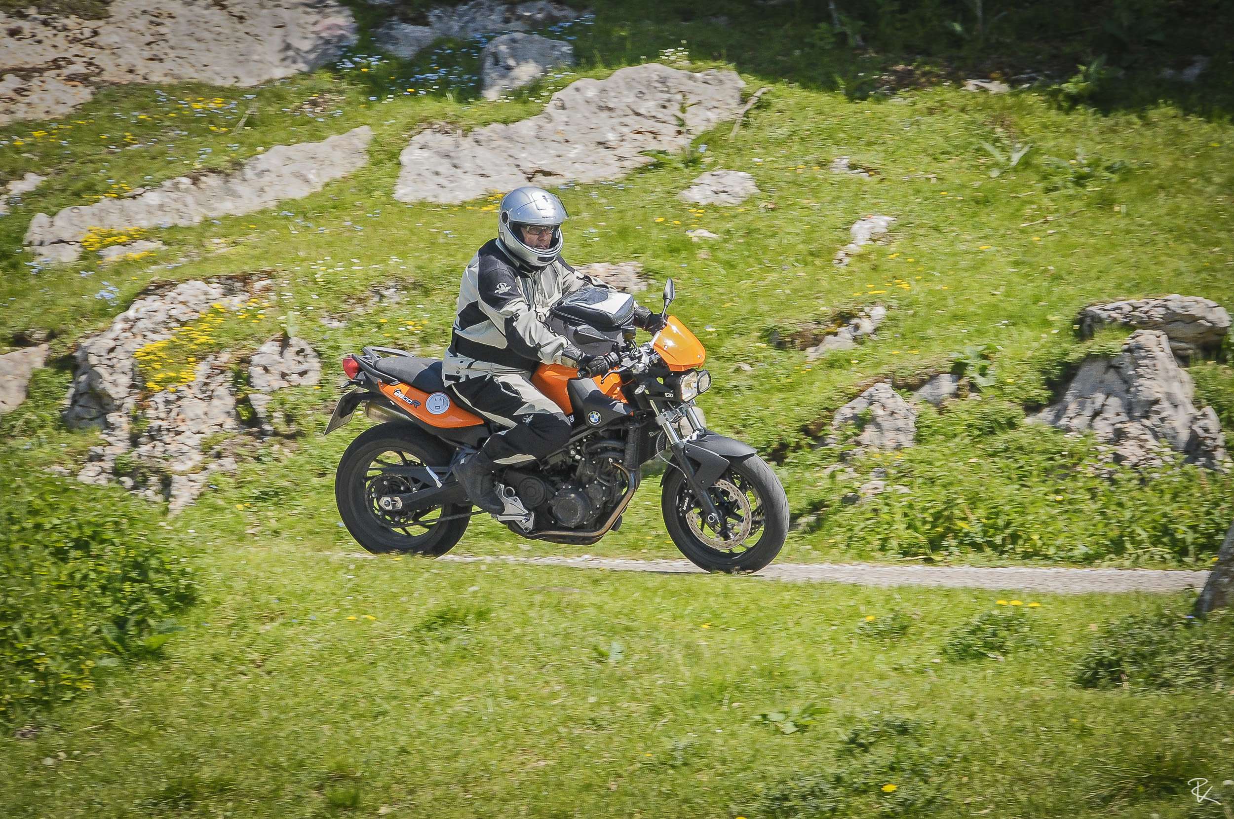 Die nackte Twin-R begleitet mich sowohl auf einer ausgiebigen Trentino-Tour wie auf meinen gewohnten und bekannten Teststrecken. Gleich nach Erhalt kann ich mit auf einer kleinen Runde an sie „gewöhnen“, wobei die Gewöhnung gar nicht stattfindet. Ich setze mich drauf und hab sofort das Gefühl, dass die R MEIN Motorrad ist. Draufsetzen – nein – eher reinsetzen und wohlfühlen. Genau so fühlt es sich jedes mal an, wenn ich auf der F 800 R Platz nehme.