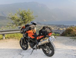 Gardasee – schön, aber viel Verkehr. Auch hier macht die F eine gute Figur. Zwar weist sie mitunter kräftige Lastwechselreaktionen auf, jedoch im erträglichen Rahmen. Schleichfahrt ist durch Riva del Garda angesagt. Ebenso oft auf der Ostseite des Sees. Ich neige immer wieder bei besonders langsamer Fahrt dazu, Schlangenlinie zu fahren. Ich denke, dass dies durch den Lenkungsdämpfer verursacht wird. Dieser verrichtet sonst jedoch seinen Dienst unauffällig und nachhaltig.