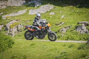 So lässt sich die F 800 R ultrahandlich und stabil durch jede mögliche Fahrsituation auf den Bergstraßen bewegen. Selbst enge Kehren, die ich nahe dem Lenkanschlag fahren muss, sind einfach zu durchfahren. So werden auch ein Pso. della Spina oder der Manivapass irgendwie zu ganz "normalen Landstraßen", wenn man mit dieser BMW unterwegs ist - sicher eine Folge der passenden Ergonomie.