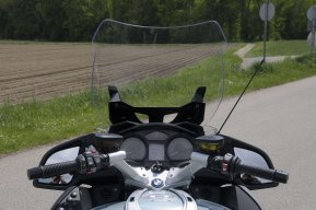 - Das Windschild ist größer, weist eine verbesserte Aeroakkustik und Durchsicht auf. In der Praxis überzeugt es mich mit hervorragendem Wind- und Regenschutz. Und ich werde von störenden Verwirbelungen verschont. Die Sogwirkung tendiert Richtung Null. Genial, wie ich finde – und es kann ohne Probleme auch an die bisherige R 1200 RT montiert werden.